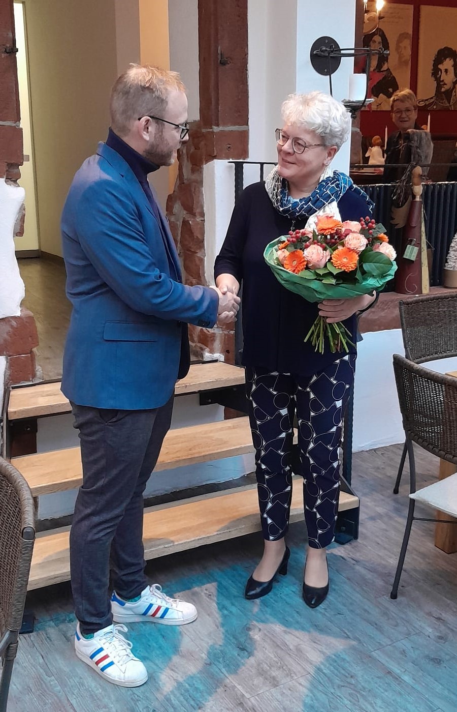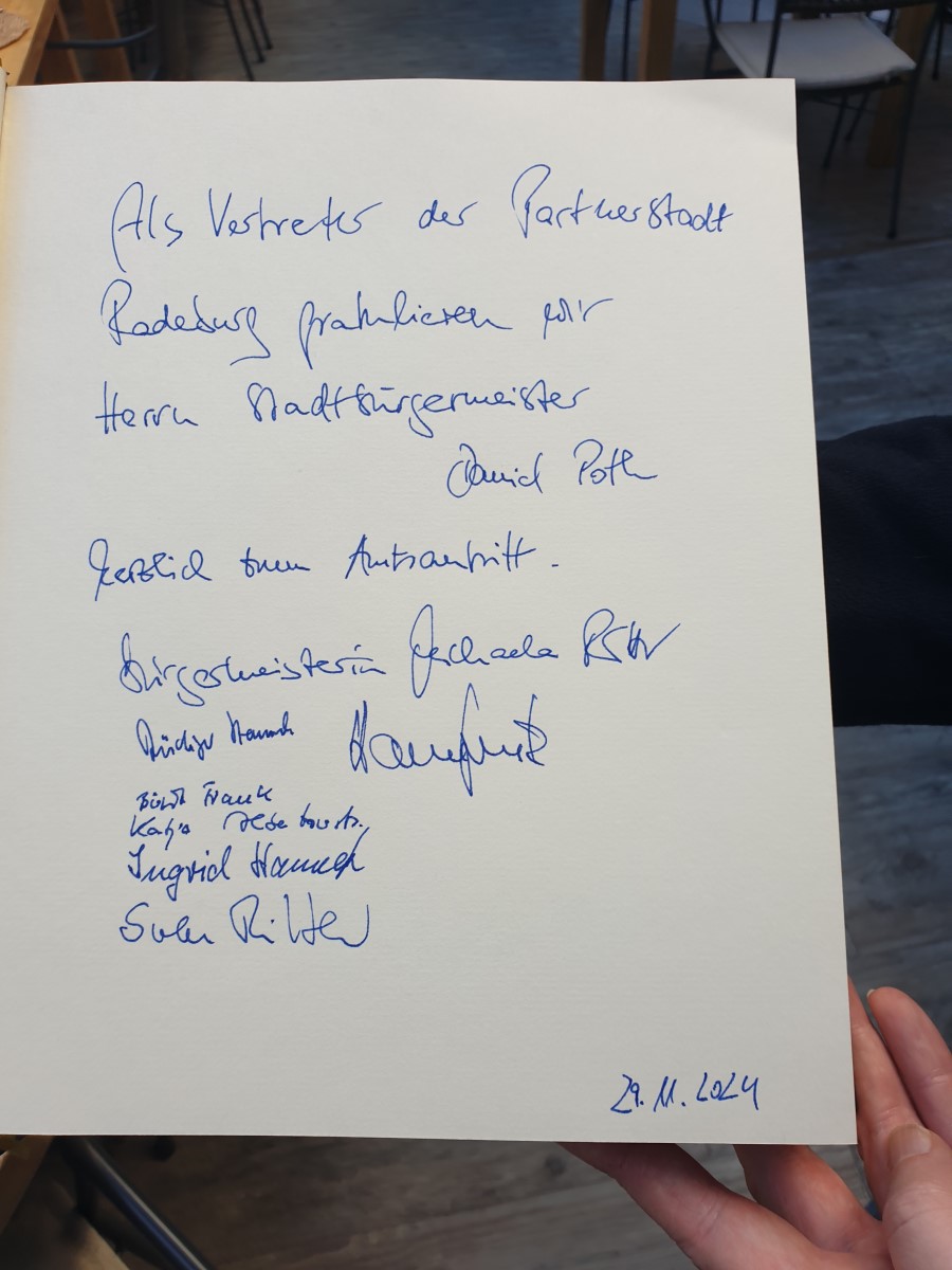 Radeburger Delegation in Edenkoben 11/2024 – Bürgermeisterin Michaela Ritter gratuliert Stadtbürgermeister Daniel Poth zum Amtsantritt